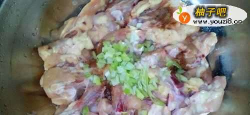 2捞出控干水分,加入葱花,料酒,酱油,十三香,姜粉,胡椒粉拌匀,淹十分钟