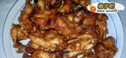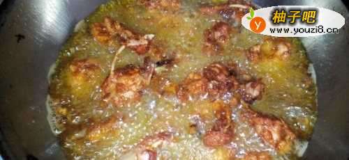 6油温到七八成热的时候一块一块的下入鸡叉