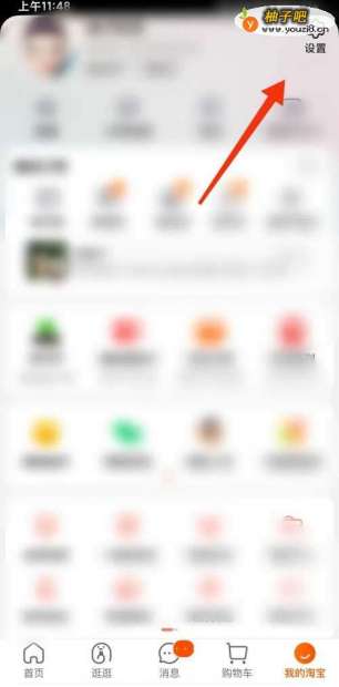 打开淘宝软件,进入我的选项页面,点击上面的设置