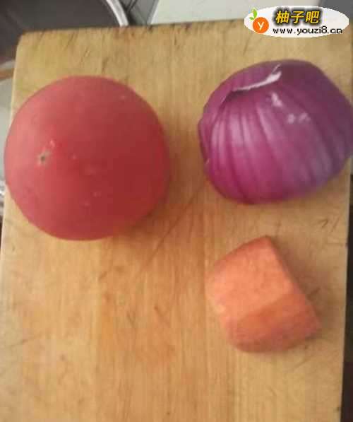 嫩姜切成细丝,紫色洋葱、胡萝卜、西红柿 适量