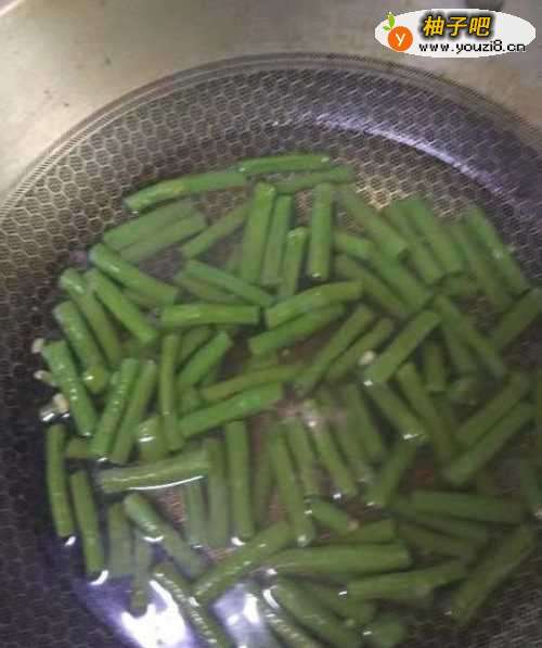 2豇豆洗净后切成小段,用开水焯水变色后捞出控干备用。