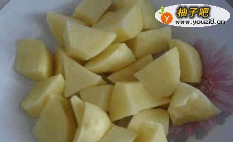 土豆切滚刀块。