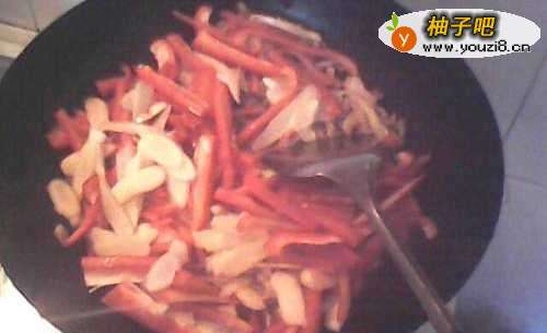 9倒入甜椒生姜翻炒