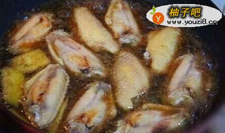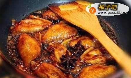 收汁的时候要不停的用铲子翻动鸡翅,直到鸡翅表面裹上焦糖色,锅中有明显的油渗出即可。
