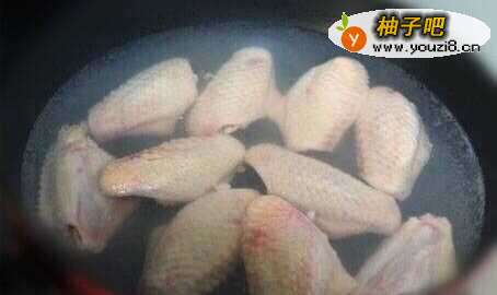 2第二步,将解过刀的鸡翅放入锅中,加水至刚好没过鸡翅的位置,调小火,等到水快开锅的时候关火,这时不能让鸡翅煮起来,那样的话后面放可乐不能入味。