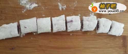 5将西米皮卷起卷成长条,切成一块一块的
