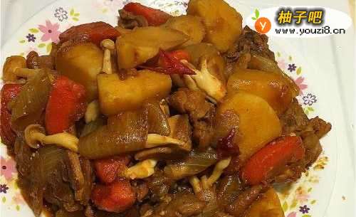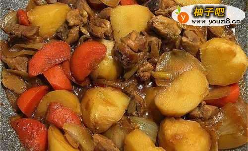 4放入马铃薯块,加3大匙酱油,一米杯水拌匀盖上锅盖焖煮,直到马铃薯变软汤汁稍微收干。