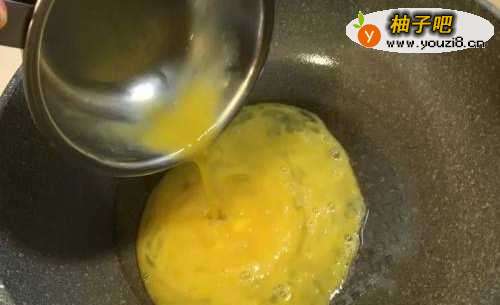 2鸡蛋加少许盐打散,锅热加一大匙油,倒入蛋液