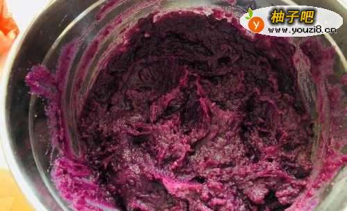 2加入白砂糖搅拌成紫薯泥。