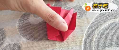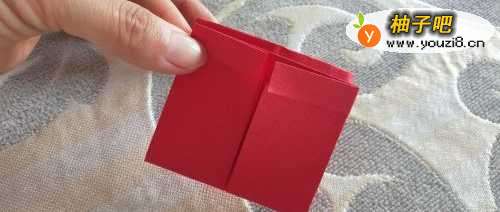8如图,将折纸下面的左右两角分别向中间折过去。
