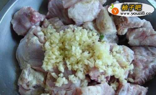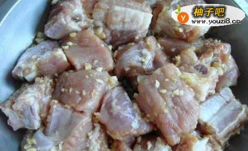 2把胡椒粉,料酒,蒜末,盐和排骨混合后抓匀后放进冷藏室腌制1天