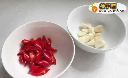 2辣椒、蒜切粒备用