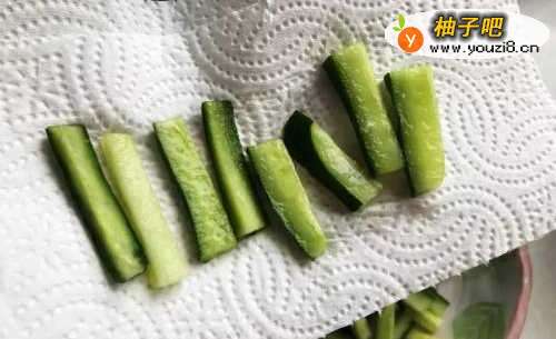 3把用盐腌过的黄瓜用纯净水冲净,用厨房纸擦干后放入冰箱20分钟