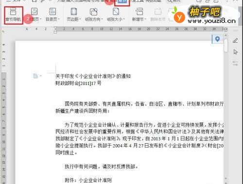 2点击菜单栏的【章节】—【章节导航】,打开文档的分节导航;
