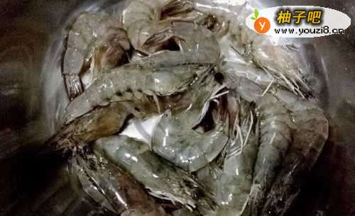 2虾用剪刀剪去虾须,开背挑去虾线用清水洗净沥干水分,加两勺料酒,少许食盐、姜丝腌制十分钟。