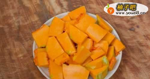 1、其实“遍地黄金”的做法很简单,工序也不多,而且营养丰富,最适合懒惰的上班一族,把南瓜切块备用。