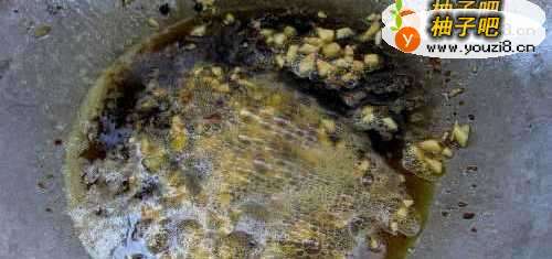 4锅里烧油,油烧好以后把生姜,大蒜,自制豆瓣酱煸香。