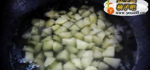 3把切好的土豆再放到锅中煮至六七熟后捞出沥干水分。
