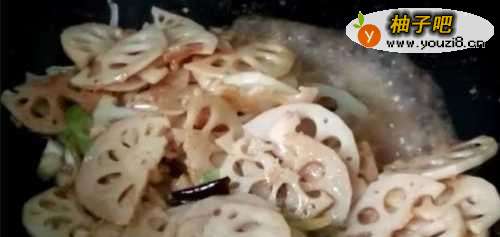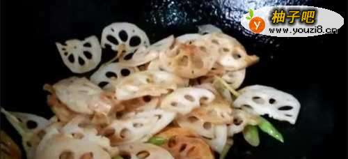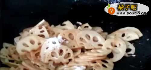 4放入莲藕翻炒。