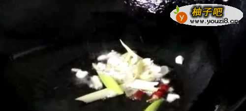 3锅中放油烧热,放入葱、姜、蒜、干辣椒炒香。