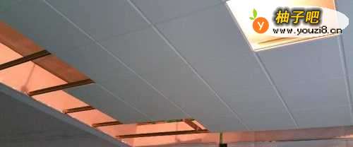 6继续把扣板安装到次龙骨之间,如果安装到最后有半块板的时候,要用壁纸刀和剪刀把扣板裁剪到正好的尺寸。然后把灯安装到确定好的位置。