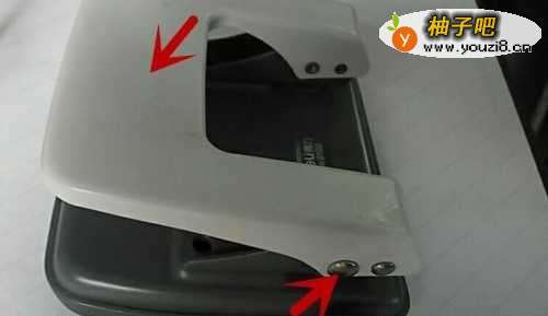 11打孔机用久了,要清理垃圾。清理方法:打开塑料底座倒掉即可。