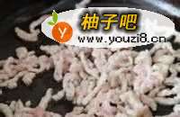 5锅中放油烧热后放入肉丝迅速拨散,至颜色变白即关火盛出备用;