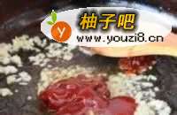 6锅中留底油爆香蒜末及姜末,接着加入豆瓣酱适量炒香,