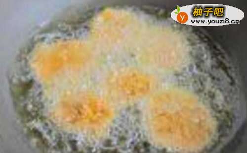 4锅中倒油,炸裹淀粉的土豆片,炸至金黄捞出控油