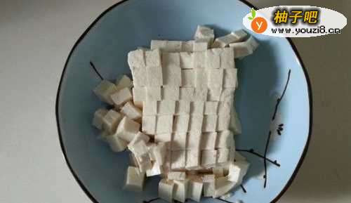 豆腐切成小块。