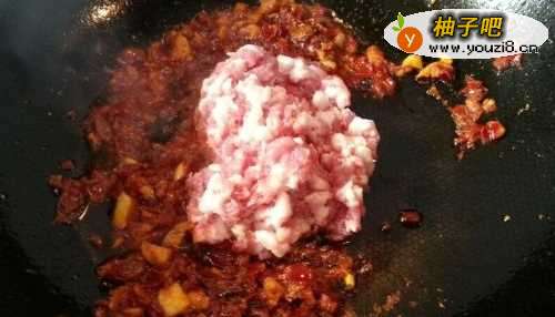 5放入肉末炒熟。