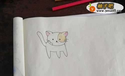5我们先用彩铅给花猫的面部上色,小伙伴们可以选择自己喜欢的色彩。