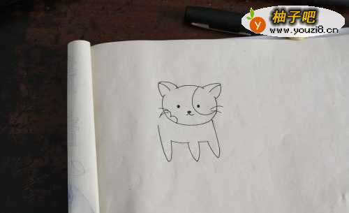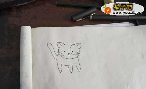 3然后再把小花猫的身子用线条表现出来,如下图的样子。