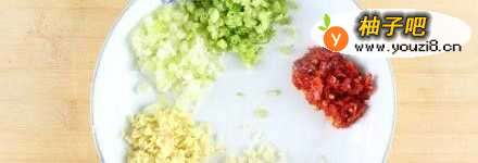 2朝天椒,小葱切碎,生姜,蒜剁成沫