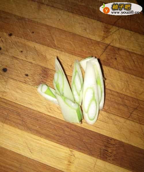 如图,首先把大葱洗净,然后切好。