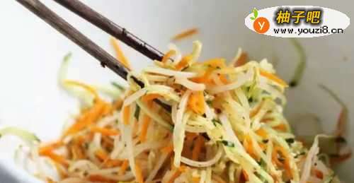 88、将绿豆芽、黄瓜丝、胡萝卜丝和调味拌匀即可食用了粒痕。爽口开胃的凉拌绿豆芽就完成了。