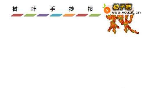 4在【树叶手抄报】标题的下方右侧处,在框内写上字,如下图所示。