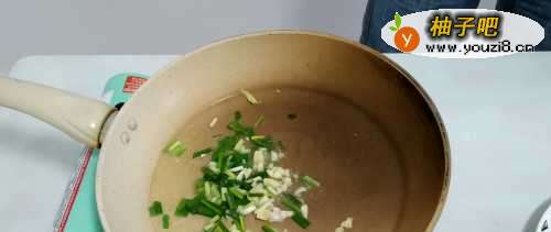 4再另起一锅,油热后,把葱花,蒜粒倒入油锅煸香;