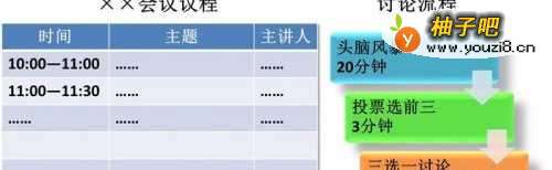 5对于自己组织的会议。首先审问是否必须要开会,是否必须用开会的商务工具。其次是会议议程要有时间管理,每一项议程的时间是多少分钟,要落实到每项议程的主讲人知道自己的讲话时间控制在多少分钟之内。对于会议上有讨论环节的,主持人要规定好讨论时间和讨论结果产生的流程,发言人要先讲重要的,先讨论解决关键问题。