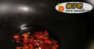 2当羊油煎成焦黄色时,倒入黄豆酱翻炒,直到有酱香味流出