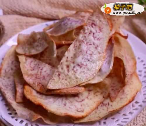芋头片越薄越脆 炸前必须冲洗掉淀粉沥干水份再炸就不怕粘在一起