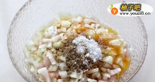 4放入鸡蛋清、鲜鸡汁、糖、盐、花椒粉和孜然粉