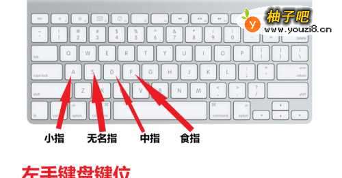 1.首先我们要知道十个手指在键盘上的摆放位置,如下图,左手分别对应小指(A)、无名指(S)、中指(D)、食指(F)