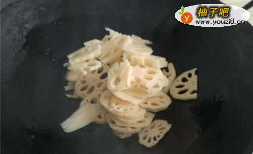 3锅中倒入切好的藕片。
