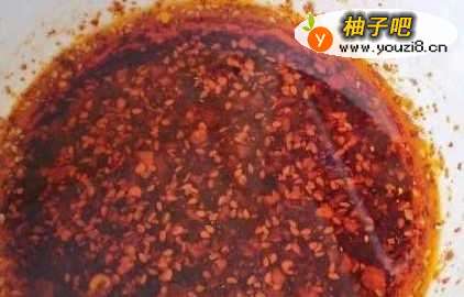 3第三步,调制酱料,碗中加入蒜末、盐、白糖、鸡精、生抽、醋、油泼辣子,搅拌均匀,备用