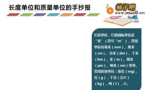 2在【长度单位和质量单位的手抄报】标题的右侧处,画出画面丰富内容,如下图所示。