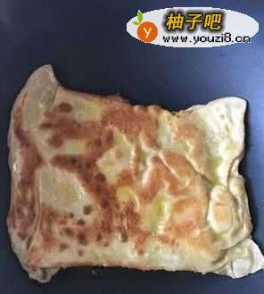 14这样一个饼就做好了,剩下的左边的一半面皮一样操作。一个面团可以做两个饼。剩下的面团也是重复前面的过程。