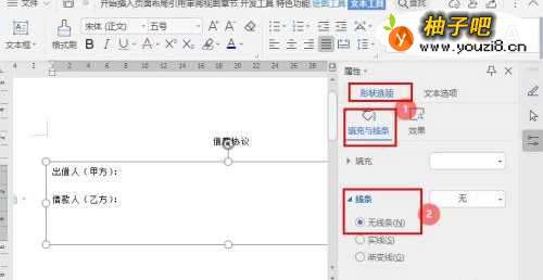 5在”属性“对话框中,选择【形状选项】—【填充与线条】—【线条】,勾选【无线条】即可;