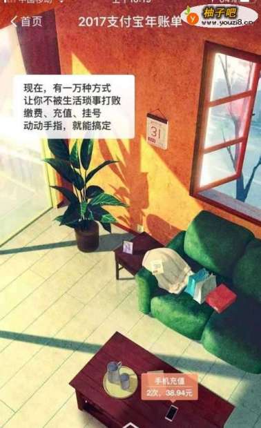 2在界面首页的中间,如下图所示地方,我们可以看到“2017年账单”的字样,点击;