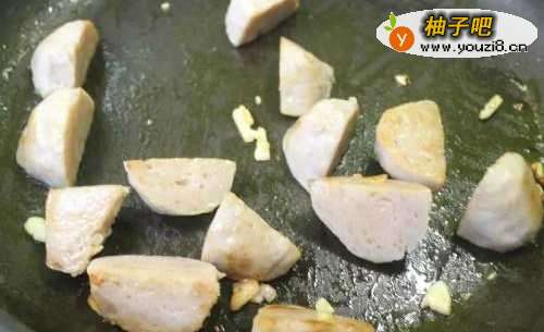 3炒到贡丸略焦爆香就可以了